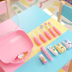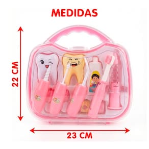 Brinquedo Maleta Dentista Médico Odontologia Acessórios 11pç Rosa -