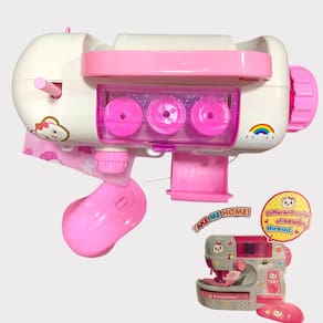 - com a linda máquina de costura infantil as crianças terão diversão garantida, além de ser um brinquedo educativo ela também funciona como uma máquina de costura de verdade dando pontos em pedaços de tecidos os pontos são leves não oferecem uma costura resistente pois trata-se de um brinquedo . Ela possui uma agulha na parte de cima que faz com que a máquina costure de verdade. Acompanha 3 carretéis de linha para a diversão ficar completa. os carretéis são rebobináveis, ou seja, ao acabar a linha ele pode ser reabastecido apenas enrolando a linha .