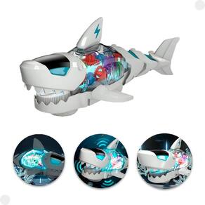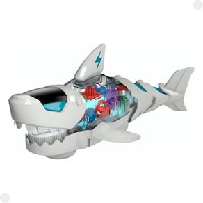 Brinquedo Meca Tubarão Branco Robô com Luz 7204 - Braskit DESCRIÇÃO DO PRODUTO: