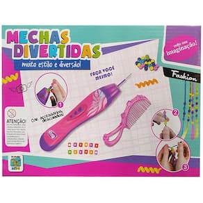 Atenção: imagens meramente ilustrativas.- brinquedo mechas divertidas - faça você mesmoContém:01 - aparelho de mechas.01 - pente.+ 50 - acessórios.Já pensou criar todos os dias um penteado diferenteCom o mechas divertidas as meninas vão poder criar seus penteados favoritos para poder ir para escola ou passearFacilidade na hora de arrumar os cabelosVai poder fazer nas amigas e em todo mundo que ama uma mecha coloridaFaça você mesmoAs meninas na moda todos os diasMuito estilo e diversãoGaranta já o seuCaracterísticas:Cor: rosa.Material: plástico e metal.Tamanho aproximado:23 cm.Segurança:003589/2021Inmetro.Atenção: recomendável para crianças acima de 3 anos.