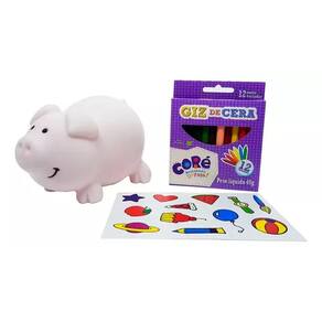 É um incrível cofrinho em formato de porquinho para a criança utilizar como ela quiser! Ele é lavável e pode ser colorido várias vezes, acompanha um kit de giz com 12 cores e uma cartela incrível de adesivos coloridos. O Primeiro Cofrinho além de promover diversão para a criança estimula a criatividade, de uma forma divertida e leve. Ele é um produto atóxico e livre de ftalatos. Acompanha a tampinha para a remoção das moedas.