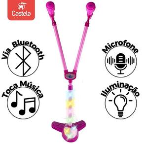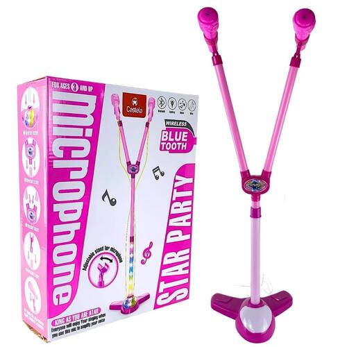 Brinquedo Microfone Infantil Dupla Com Luz Musical Castela Pedestal com 2 Microfones com Luz e Som Rosa - Castela