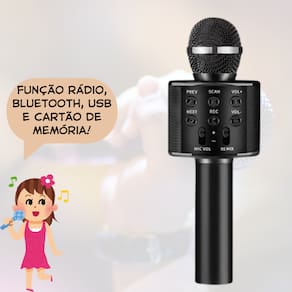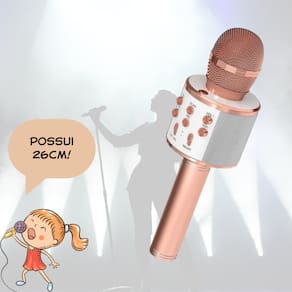 ???? Conexão Bluetooth – Permite tocar músicas direto do celular ou tablet para acompanhar a cantoria.???? Efeitos de voz – Divirta-se com diferentes efeitos sonoros para deixar o show ainda mais especial.???? Luzes LED coloridas – Iluminação vibrante para um espetáculo completo.???? Alto-falante embutido – Som potente e claro para cantar sem precisar de aparelhos extras.???? Recarga via USB – Prático e fácil de carregar para brincar em qualquer lugar.