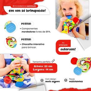 Dê ao seu bebê um companheiro multifuncional que trará conforto, diversão e alívio a mini girafa é o brinquedo perfeito para acompanhar o crescimento do seu pequeno, sendo um item essencial para cada fase do desenvolvimento. Características: Mordedor seguro e confortável: desenvolvido especialmente para aliviar o desconforto da dentição, o mordedor da mini girafa é feito de materiais seguros e macios, proporcionando alívio imediato para as gengivas sensíveis do bebê. Chocalho : com um chocalho integrado, este brinquedo ajuda a estimular os sentidos do seu bebê, transformando cada movimento em uma experiência de descoberta divertida. Pelúcia macia e aconchegante: a mini girafa é confeccionada com pelúcia de alta qualidade, super macia ao toque. Perfeita para abraços e momentos de carinho, garantindo que seu bebê se sinta confortável e seguro. Naninha que acalma: além de ser um brinquedo e mordedor, a mini girafa também funciona como uma naninha aconchegante, ajudando o bebê a ter noites de sono tranquilas e confortáveis. Especificações: Idade recomendada: a partir de 0 meses Material: pelúcia macia, silicone seguro para bebês Tamanho: aproximadamente 20 cm de altura Cor: amarela e marrom com detalhes adoráveis Peso: leve e fácil de segurar Benefícios: Estimula o desenvolvimento sensorial e motor Proporciona conforto durante a dentição Contribui para a tranquilidade do bebê na hora do sono Produto seguro e adequado para bebês de todas as idades A mini girafa mordedor, chocalho, pelúcia e naninha é o presente ideal para recém-nascidos e bebês em crescimento. Um brinquedo que reúne tudo o que seu pequeno precisa para momentos de diversão, conforto e alívio. Adquira já e garanta um companheiro fiel para todas as horas Informações importantes : nós oferecemos em todos os nossos produtos por favor, consultar no anúncio a quantidade de dias para cada produto. Muito obrigado pela confiança Yamaecom . do vendedor: 30 dias 3 Homologação Inmetro: CE-BRI/ICEPEX-I 02439-25-23 Marca: Não Informado