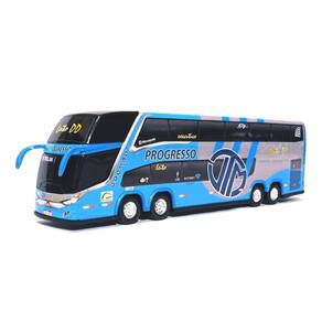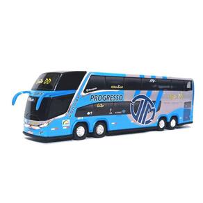 Brinquedo Miniatura Ônibus Viação Progresso Leito 1800 DD G7 Brinquedo Ônibus em miniatura 4 eixos dois andadores, super divertido e realístico.Possui um acabamento e adesivado de alta qualidade e resistência. Excelente para presentear, brincar, se divertir e colecionarTamanho aproximado do ônibus: 30cm comprimento, 7cm largura e 9cm altura com escala 1/43.Homologação Inmetro: IP-BRI-0177/2020