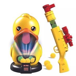 Brinquedo Mira Certa Pato Tiro Alvo Zoop Toys Vem com 1 pato; 1 disparador com mira; 12 bolinhas de espuma; Com placar, luz e sons interativos; Tente acertar as bolinhas na boca do pato com ele parado ou em movimento; Disparador de pressão com arremesso de longo alcance; Bolinhas de espuma EVA super macias; Emite sons quando você acerta o alvo e toca música enquanto o jogo acontece.