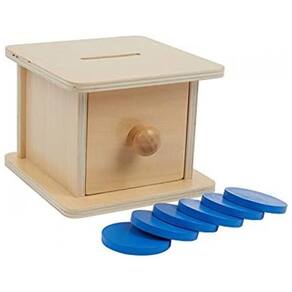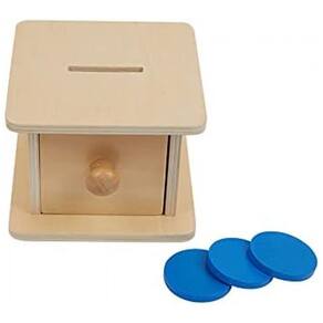 Esta é uma caixa de gaveta contendo moedas, bolas e prismas triangulares as crianças podem colocar as formas em suas mãos na gaveta através das ranhuras no topo da gaveta Este é um brinquedo que exercita a coordenação mão olho das crianças e a compreensão da permanência do objeto Desenvolvimento de movimentos refinados Este brinquedo Montessori para bebês e crianças pequenas não só aprenderá sobre a permanência do objeto, mas também desenvolverá e imrpove habilidades motoras finas e coordenação mão a olho Os brinquedos podem ser s em qualquer ambiente educacional, desde uma aula de Jardim de Infância Montessori até a Escola Domiciliar para o desenvolvimento precoce da aprendizagem
