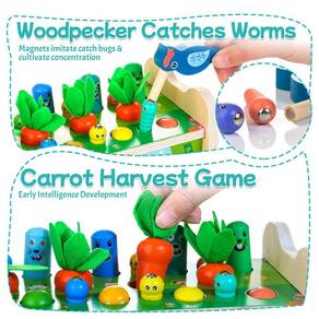 -?Brinquedo Montessori de madeira 6 em 1?Este brinquedo de madeira para bater e bater combina 6 atividades para jogar e aprender: jogo de bater uma toupeira, jogo de colher cenouras, engrenagens giratórias, 2 mostradores de aprendizagem, xilofone de 8 notas e jogo de pegar minhocas. As crianças ficarão fascinadas com este conjunto multifuncional de brinquedos infantis e se manterão ocupadas brincando.