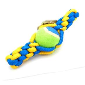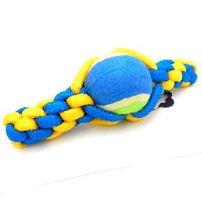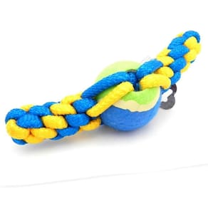 Brinquedo Mordedor Cachorro Corda Pet Bola Tênis Cães DOG007 Brinquedo Mordedor Para Cães Corda Pet com Nó e Bola de Tênis Suspensa Esse brinquedo estimula, exercita, proporciona gasto de energia de seu cão, controla a ansiedade, ajuda na limpeza dos dentes e sem contar que é pura diversão. Como todo brinquedo, exige sua supervisão para não engula partes pois nenhum brinquedo é indestrutível. Ideal para vc interagir com seu cão brincando com ele. Marca: Homepet Material: Borracha e Poliéster Medida: 21cmx6cmx6cm Peso: 100gr. Modelo: Corda entrelaçada com bola de tênis Cor: Amarelo e azul Ean: 7896183122973