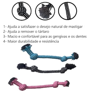 Informações: - Indicado para: Cachorro - Brinquedo de corda - Super resistente - Ajuda a remover o tártaro - Prático e atrativo - Fortalece a estrutura da boca e dos dentes; - Formato perfeito para pegar com a boca; - Promove uma satisfação ao ser mordida; - Ideal para brincar de cabo de guerra; - Fabricado em corda resistente. - Ótima oportunidade com produto de alta qualidade - Raças Pequenas - Os pets adoram!!