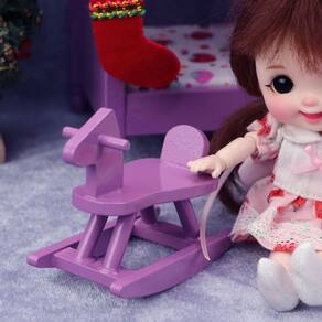 Tamanho: 7x3,5x5,8 cm Material: madeira Peso: 28 g Cavalo de balanço clássico de madeira roxo projetado para decoração de berçário de casa de bonecas em miniatura ou quarto infantil. Feito à mão com madeira durável e bordas lisas, garantindo um acessório em miniatura seguro e realista. Adequado para casas de bonecas e bonecas em escala 1/12, perfeito para adicionar um toque divertido e animado às cenas. Este produto é apenas um modelo de brinquedo, não para uso humano real. Por favor, mantenha-se afastado de crianças pequenas para evitar engolir ou se machucar. Ótimo para brincadeiras de fingir, decorar minicenas e enriquecer coleções de móveis para casas de bonecas.