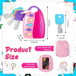 - Brinquedo interessante e educativo: os diferentes botões podem criar vários sons e luzes piscando, como sons de carro, música, buzina de carro, etc., e as cores do brinquedo realista das chaves do carro são ótimas para ajudar a fortalecer os sentidos e a coordenação olho-mão