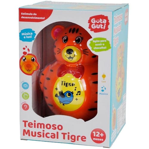 O Teimoso Musical Tigre Guta Guti é muito fofo! Empurre para ouvir o som do chocalho e aperte o nariz para tocar música e acender a luz!