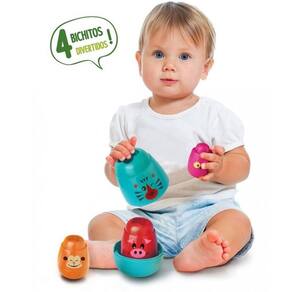 Descrição do produto: A matrioska da elka é pura diversão, a cada abertura a criança descobre um animal, são empilháveis, possuem a base arredondada, coloridas e fáceis de encaixar. Matrioska da elka é formada por 4 animais. É Pura Diversão