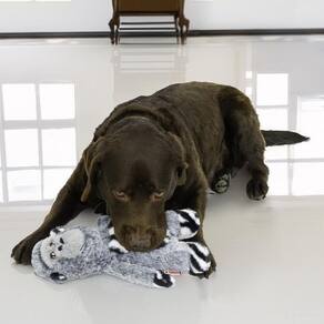 Corpo inteiro com apito reforçado e resistente a perfurações Produz sons variados: guizo rattle , estalos crinkle e apito squeaker Estimula o instinto natural de caça e interação ativa Dupla camada de material para maior durabilidade Revestido com pelúcia macia para abraçar e morder com conforto Ideal para cães médios e grandes
