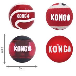 As bolas para cachorro KONG Signature Balls, um conjunto de bolinhas irresistíveis com a marca KONG, projetadas especialmente para cães de mordidas leves e moderadas que não são destruidores. Essas bolinhas são lindas e extremamente duráveis quando usadas corretamente, proporcionando horas intermináveis de diversão durante as brincadeiras.As KONG Signature Balls vêm em um conjunto de 3 bolas diferentes, algumas com apito e outras sem, para atender às preferências individuais do seu cão. Elas são perfeitas para jogar e satisfazer os instintos naturais de caçar e trazer.É importante ressaltar que as KONG Signature Balls não são objetos para roer. Portanto, não devem ser deixadas sozinhas com o cão, nem mesmo por alguns minutos, até que você tenha certeza de que ele não irá destruí-las. Esses brinquedos são destinados a cães com mordidas leves e moderadas. Para cães com mordida forte e destruidores, recomendamos preferir os brinquedos de borracha natural da KONG. Após a brincadeira, lembre-se de guardar as bolinhas para a próxima diversão.Composição: Tecidos, plástico e apito.Pequeno: 5cm diâmetro - vem com 4 bolinhas sortidasProporcione ao seu cão momentos de diversão seguros e alegres com as KONG Signature Balls. Deixe seu amigo peludo aproveitar o melhor do tempo de brincadeira!Possui um material resistente mas não indestrutível. Embora seja fabricado com os materiais mais resistente do mercado, seu pet poderá destruí-lo.A garantia da KONG cobre apenas defeitos de fabricação e não eventuais danos causados pelo animal ou mau uso. Use apenas com supervisão.