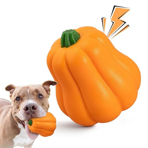 - Brinquedo divertido para cães Squeaky: com sua cor brilhante e formato fofo de abóbora, este brinquedo chama a atenção do seu cão instantaneamente. O guincho embutido cria sons divertidos enquanto mastiga, mantendo seu cão animado e engajado. Perfeito para mantê-los ocupados enquanto você estiver ausente e ajudar a reduzir o tédio e a ansiedade