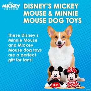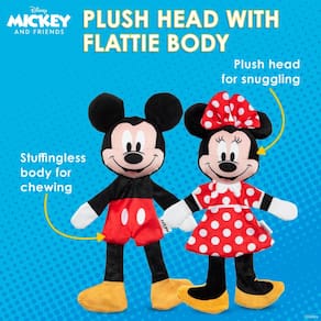 Disney for Pets Mickey e Minnie Mouse Squeaker de pelúcia com laço achatado | Brinquedo de pelúcia para cães inspirado no Mickey Mouse, 34,3 cm - pacote com 2 - Pacote com 2 brinquedos temáticos para cães Mickey e amigos – Compartilhe a magia da Disney com seus animais de estimação com os brinquedos de cachorro Mickey e seus amigos. Este conjunto de presente para cães Mickey Mouse é um presente perfeito para fãs da Disney - Cabeça de pelúcia com corpo plano – Este brinquedo exclusivo possui uma cabeça de pelúcia 3D perfeita para aconchegar, e um corpo sem enchimento que é divertido para mastigar e brincar de puxar - SQUEAKER E CRINKLE – Cada brinquedo de pelúcia para mastigar para cães possui um barulho dentro da cabeça de pelúcia e um som enrugado no corpo achatado pelo qual os cães enlouquecem. - Brinquedo de pelúcia para cães de 33,5 cm – Brinquedo de pelúcia leve e de tamanho médio que é perfeito para jogar, carregar e aconchegar - Brinquedo oficial para cães da Disney: este é um brinquedo oficialmente licenciado para cães da Disney para fãs da amada marca