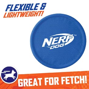 Brinquedo para cães Nerf Dog Nylon Flyer, disco voador, leve, durável e resistente à água, ótimo para praia e piscina, 9 polegadas de diâmetro, para raças médias/grandes, unidade única, azul