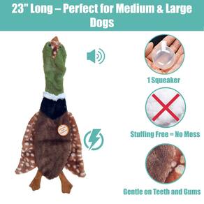 - Variedade de estilos de animais: disponível em vários designs de 35 cm e 58 cm, como pássaro, vaca, cordeiro e cabra; uma maneira divertida de misturar a coleção de brinquedos do seu cão