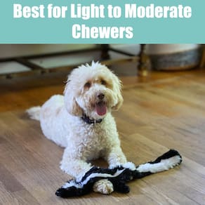- Roedores duplos para envolvimento extra – um rangido na cabeça e um na cauda mantêm a atenção do seu cão, ajudando a reduzir o tédio, a ansiedade e a mastigação destrutiva.