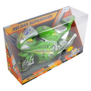Brinquedo para criança moto superbike a fricção com som luz Cor: verde Moto com piloto de fricção com luz e som, para se divertir fazendo diversas manobras radicais. A criança irá adorar receber uma moto linda assim