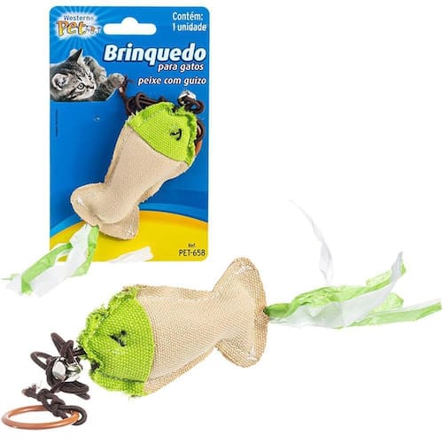 Brinquedo para gato peixe de poliester com guizo + argola colors 27x5cm na cartela Tamanho aproximado: 27x5cm Peso aproximado: 20g Tipo de produto: brinquedo para gato peixe com guizo + argola na cartela Cor: colorido Composição: poliéster e plastico