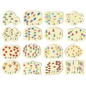 Esse brinquedo contém 16 diferentes formas de quebra-cabeças, totalizando 48 peças em madeira. Cada quebra-cabeça é composto por contas fáceis de adição e subtração, com imagens que facilitam a associação e o aprendizado. As peças são de alta qualidade e duráveis, garantindo que a criança possa brincar e aprender por muito tempo.