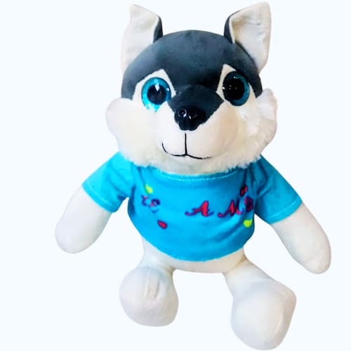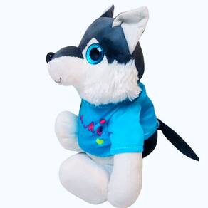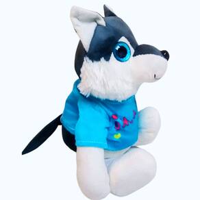 Brinquedo Pelucia Cachorrinho Azul Olho de Vidro 25cm para Criança Presente Decoração