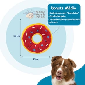 Tamanho do Brinquedo: As dimensões são de aproximadamente 15 x 15 x 4 cm, tornando o Donutz Jumbo ideal para todos os tipos de brincadeiras e também perfeito como um travesseiro aconchegante para seu cão relaxar. Material: Poliéster e Eva