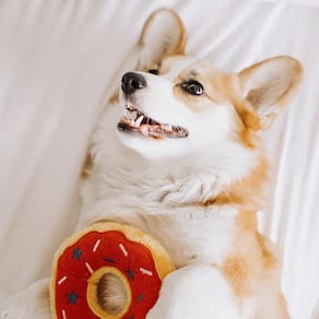 Os Donutz da ZippyPaws trazem um design único, com "granulados" e coberturas bordados que imitam perfeitamente a aparência de donuts reais e deliciosos.
