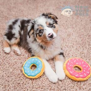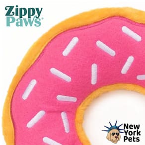 Os Donutz da ZippyPaws trazem um design único, com "granulados" e coberturas bordados que imitam perfeitamente a aparência de donuts reais e deliciosos.