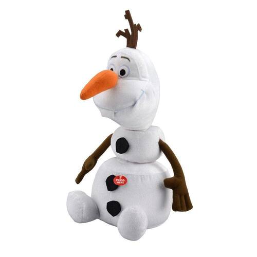 Olaf é um boneco de neve, criado magicamente por Elsa, que vive nas montanhas de Arendelle. Super amistoso, inocente e extrovertido, ele ama abraços calorosos e sonha com as coisas mais impossíveis do reino. Não só as crianças, mas muitos adultos também, vão querer este boneco de pelúcia do simpático boneco de neve Olaf do filme Frozen – Uma Aventura Congelante, o último mega blockbuster dos estúdios Disney! O Frozen Pull Apart and Talkin’ Olaf Plush é um boneco de pelúcia falante, super macio, com 35 cm de altura e função “pull apart” para ser desmontado parcialmente (as partes ficam presas com cordas). O boneco de pelúcia do Olaf é feito pela Just Play e fala 6 frases engraçadas e divertidas retiradas diretamente do filme da Disney.