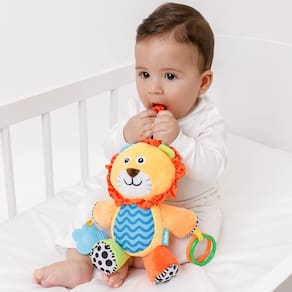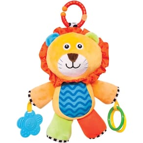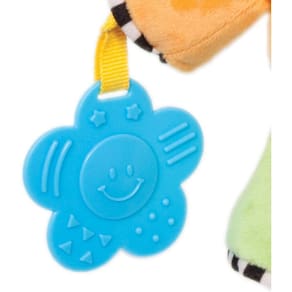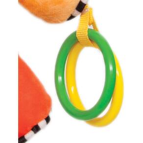 Ao puxar a argola, o bichinho treme e emite som de chocalho, tornando a brincadeira ainda mais envolvente. Além disso, possui mordedor macio, ideal para aliviar o desconforto causado pelo nascimento dos primeiros dentinhos.