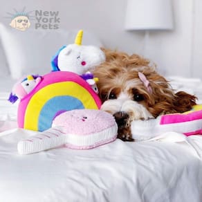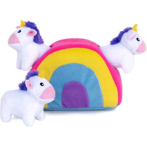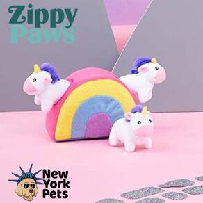 O Brinquedo Zippy Burrow™ Unicórnios no Arco-Íris é interativo, onde o esconde-esconde no arco-íris proporcionará horas de diversão deliciosa para o seu cachorro.