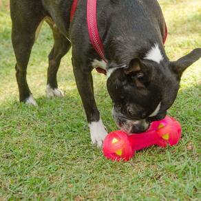 O Brinquedo Pet de Borracha Osso da Plasvale Pets tem o formato de osso e é um dos preferidos entre os amigos. Resistente e atóxico ideal para cachorros de porte médio que gostam muito de brincar. Seus amigos não se sentirão mais sozinhos.