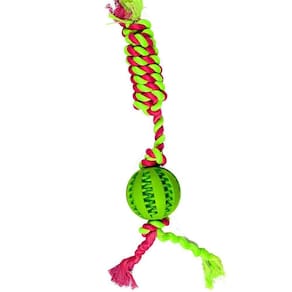 Acompanha o produto: - 1 Brinquedo Pet Dental Play para Morder Bolinha com Corda 7x10x40cm Garantia: - 3 meses