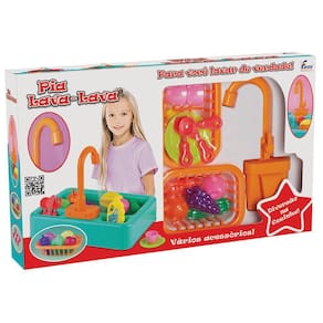 Brinquedo Pia de Cozinha Infantil Sai Água de Verdade com Acessórios - Verde - Fenix Olha que show é esse brinquedo Você aciona a alavanca e sai água de verdade. Liberte sua imaginação, chame suas amiguinhas Conteúdo da embalagem: 01 Pia, 03 talheres, 02 xicaras,04 frutas e 04 legumes. Referência: PP-01. Material: PVC. Estimula a criatividade, o faz de conta, convívio social, e diversão. Medida da Embalagem: C x L x A 59 x 8 x 35 cm. Prazo de garantia: 03 meses de garantia legal. Observe atentamente a idade recomendada para o brinquedo. Fotos ilustrativas as cores e modelos podem sofrer alterações sem aviso prévio. Ean: 7896462005881