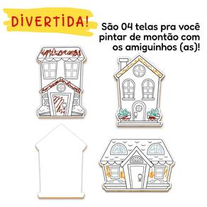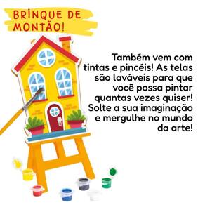 O Brinquedo Pinturinha Casinhas é a escolha perfeita para pequenos artistas a partir de 4 anos Ele transforma a hora da brincadeira em um momento cheio de imaginação, cor e diversão. Acompanha um cavalete de plástico, tintas coloridas e 4 telas de madeira com 24 cm cada - sendo 3 com desenhos de casinhas superfofas para pintar e 1 tela em branco para a criança criar a sua própria casinha dos sonhos
