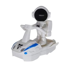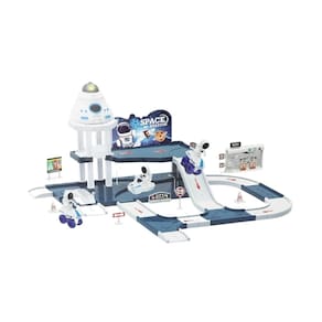 Itens inclusos: 1 moto espacial, 1 carro espacial, 1 capsula com luz, 2 astronautas, posto de abastecimento e manutenção, pistas para os veículos, adesivos.