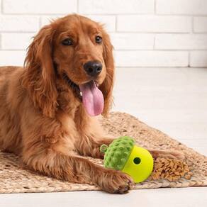 Libera petiscos e ração lentamente enquanto o pet brinca