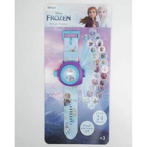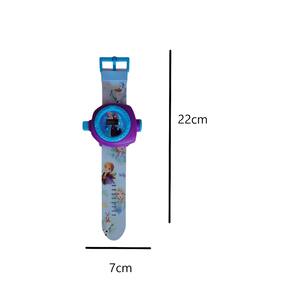 O relógio projetor infantil frozen possui 24 projeções diferentes, basta pressionar o botão lateral para projetar as imagens.
