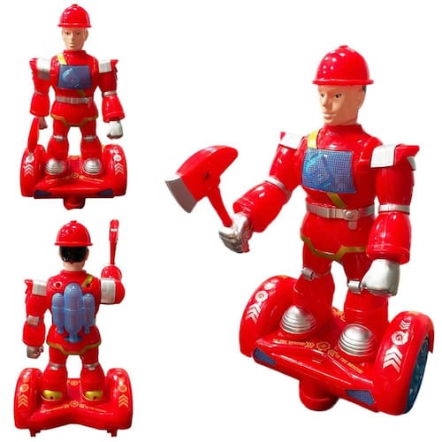 Brinquedo robô dançarino sons e luzes musical fire fighter, brinquedo robô que dança, gira e bate com luz led e som musical à pilha.