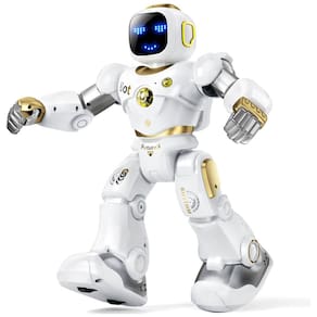 Simule o desempenho humano perfeitamente O rosto do LED varia em diferentes emojis para expressar seus sentimentos 9 motores poderosos garantem o robô para ações complicadas sem problemas este robô interativo responde ao tocar sua cabeça, simula bem as ações humanas e promove a interação com seus filhos, o que pode despertar a curiosidade do seu filho para interagir com o robô.
