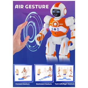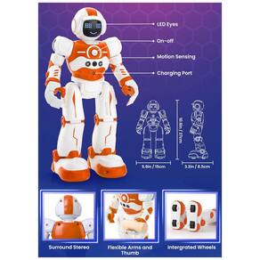 O Robô EduCuties pode ser controlado por controle remoto infravermelho ou por gestos da mão. Ele pode virar para a esquerda, para a direita, deslizar para trás e para frente de acordo com os comandos gestuais. Além disso, possui funções como exibição automática e evasão de obstáculos. Os olhos do robô acendem com LED azul brilhante ao se mover. Com programação inteligente, o robô pode executar 50 ações inseridas pelo usuário e reproduzir os movimentos gravados, como dançar, patrulhar e muito mais. Feito de plástico ABS atóxico, possui juntas múltiplas flexíveis nos ombros, cotovelos e polegares, além de rodas na base para executar várias combinações de movimentos. Recarregável via USB, proporciona 60 minutos de diversão com apenas 2 horas de carga. Este companheiro versátil e envolvente pode dançar, cantar, caminhar, patrulhar e falar. Cada robô mede aproximadamente 15 x 8,4 x 27 cm.