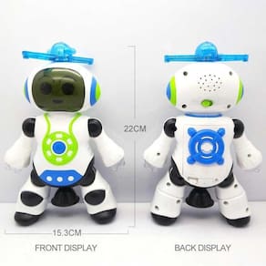 Brinquedo Robô Que Dança E Gira 360 Luz Musica Dance Robot O brinquedo robô dançarino é um brinquedo muito interativo para as crianças, ele diverte os pequenos com seus movimentos de dança, músicas, hélice superior, giros 360° e leds. Projeta luzes com os leds laterais. Como usar: 1 - para utilizar de forma correta, será necessário 3 pilhas tipo aa não inclusas no pacote 2 - desparafuse o lacre na parte inferior do brinquedo. 3 - coloque as 3 pilhas nas suas devidas posições. 4 - coloque o lacre e parafuse-o novamente. Idade recomendada: este brinquedo é recomendado para crianças a partir de 3 anos Conteúdo da embalagem: 1 robô dançarino gira 360 com hélice opções do produto: este produto está disponível somente na cor branco Dados técnicos do produto: Material: plástico Largura: 13 cm altura: 21 cm comprimento: 11 cm Peso: 340 gramas INMETRO CEBRI/NNAC 01478000 NM 300/2002 Pacote 01 Peça Brinquedo Robô Dançante sem pilhas Não possui controle remoto Ean: 7908273049531