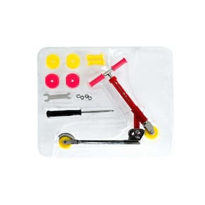 Contém: 01 patinete de dedo, 02 manoplas, 04 rodas, 04 porcas e 02 ferramentas especiais de brinquedo.