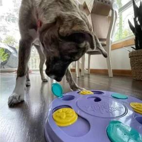 Quebra-cabeça interativo 3 em 1 - Apresenta três níveis de jogo para manter seu cão entretido - deslizar, girar e virar!