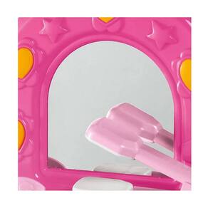 Brinquedo tateti mini glamour penteadeira infantil 330 o brinquedo e seus acessórios aproximam a criança da realidade, desenvolvendo habilidades como coordenação motora e noção de espaço. Além disso, estimula a percepção. Com a penteadeira mini glamour calesita as meninas irão se arrumar para a brincadeira, com seu próprio salãozinho de beleza com vários acessórios de plástico, espelho, porta-objetos e espaço para guardar acessórios. A penteadeira mini glamour calesita estimula a prática de roles sociais através da imaginação e fantasia. Imagem meramente ilustrativa. Código de barras: 7898664630748 código de referência: 330 marca: tateti modelo: penteadeira infantil mini glamour idade: +3 anos certificado: ce-bri/innac - 02008-03a nm 300/2002 ocp 0061 conteúdo: 1 penteadeira, 2 abas laterais 1 prancha 1 secador 1 escova 1 pente 2 presilhas 1 pulseira 2 frascos com tampa 2 porta joias com tampa , lacrado e com.
