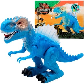 Brinquedo Tiranossauro Rex Dino Com Luz LED Movimentos Sons Azul -